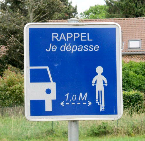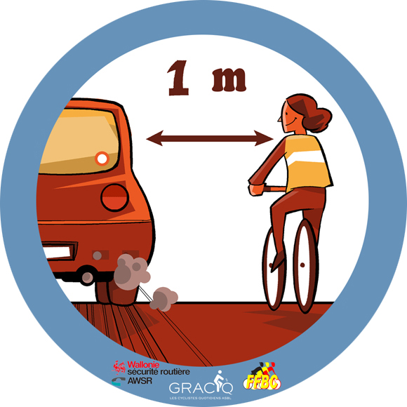 Pour rappel, notre code de la route prévoit qu’un conducteur doit maintenir une distance latérale d’au moins un mètre entre son véhicule et le vélo qu’il dépasse. Trop souvent les automobilistes ne tiennent pas compte de cette règle et les cyclistes, usagers particulièrement vulnérables, ont alors un sentiment d’insécurité. La vitesse et la masse d’une voiture provoquent un déplacement d’air susceptible de déstabiliser un usager plus léger lorsqu’il est frôlé de trop près. Par ailleurs le cycliste doit pouvoir s’écarter de sa trajectoire pour éviter un obstacle comme par exemple un nid de poule ou une portière qui s’ouvre soudainement, etc. Il importe donc à l’automobiliste de prévoir ces cas de figure et d’adapter ses dépassements, mais tous ne le font pas.